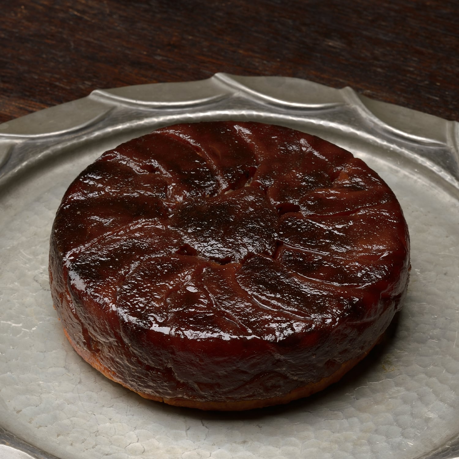 りんごをカラメル状になるまで長時間煮詰め、タルト生地を被せてオーブンで焼いた、ほろ苦いカラメルが特徴のタルトです。